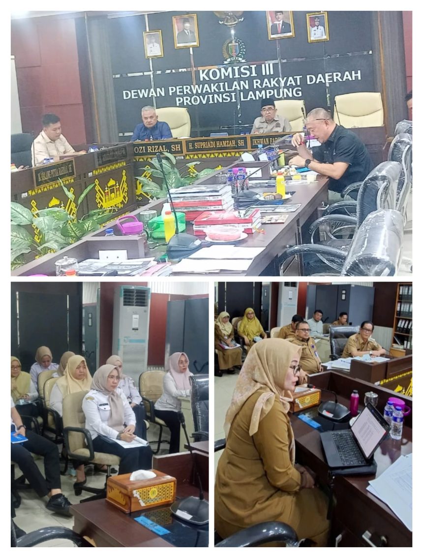 Bandar Lampung – Komisi III Dewan Perwakilan Rakyat Daerah (DPRD) Provinsi Lampung menggelar Rapat Dengar Pendapat (RDP) bersama Organisasi Perangkat Daerah (OPD) mitra kerja dalam rangka evaluasi capaian target Pendapatan Asli Daerah (PAD) Provinsi Lampung Tahun Anggaran 2025 bertempat di Ruang Rapat Komisi III DPRD Provinsi Lampung. (Selasa, 6 Januari 2026)